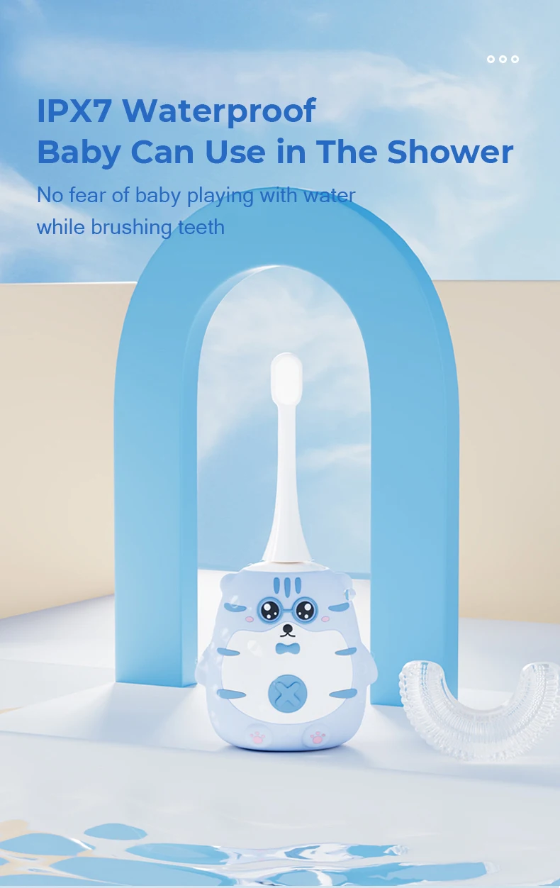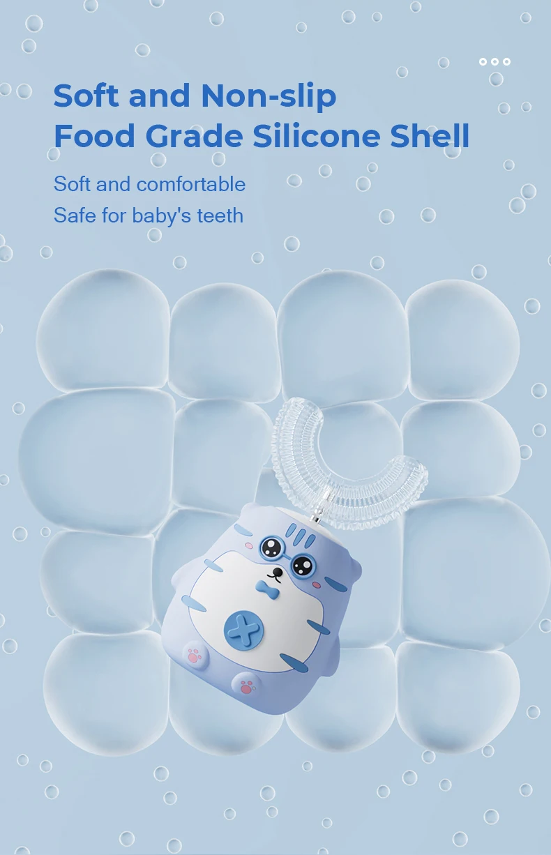 * Very soft, 360° Clean 1.Fully automated ultrasonic cleaning with 5000-20000Hz vibration per minute 2.U-shaped silicone brush head designed according to ergonomics can wrap the teeth 360 ° for comprehensive cleaning of teeth. 3.The toothbrush head can be removed and replaced. After a period of use, the toothbrush head can be removed and disinfected with boiling water.