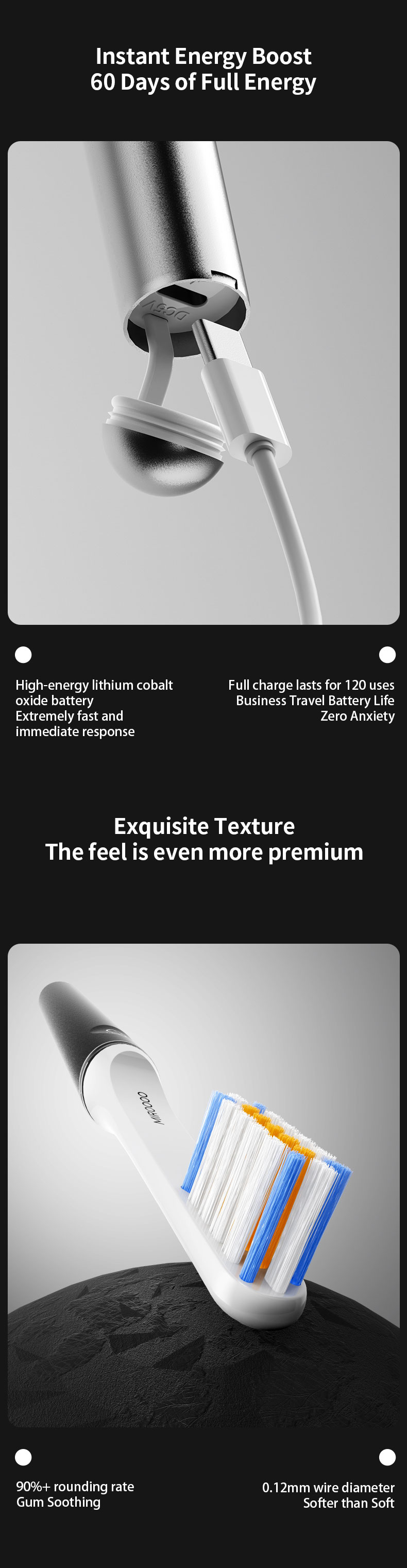 2.Clean and whiten teeth 3.breath improve gum health 4.Wide-angle Sweep Vibration
